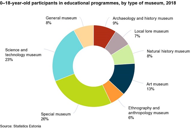 Print versionIn 2018, there were 190 museums with 249 visiting places in Estonia. Every third museum was a local lore museum, a quarter were special museums that were specialised in some narrower field.