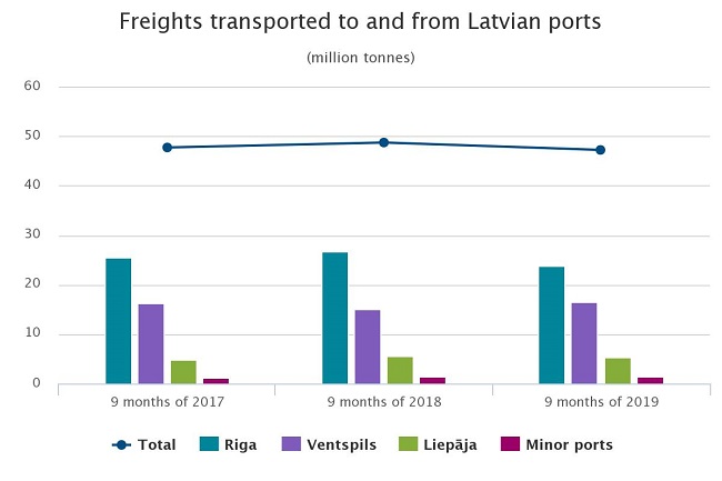 of 2019, freights transported to and from Latvian ports accounted for