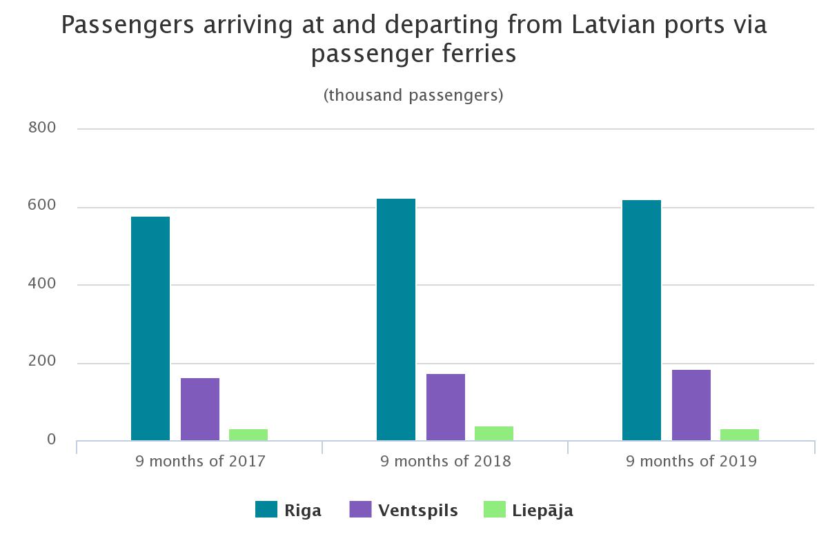 of passengers arrived at and departed from Latvian ports with ferries accounted