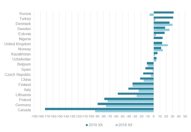 aircrafts – increase of EUR 113.4 mln. In turn, decline in imports of