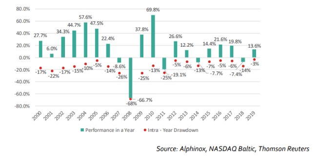 as volatility was very moderate. On the chart below one can spot that 2019 was