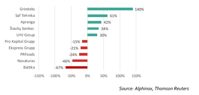 Grindeks shareholders should have been very happy with a gain of 140% in 2019, with share price rocketing in response to the mandatory share buyback by the major shareholder. Another star was SAF Tehnika – the stock that was badly sold-off in 2018 and partly recovered on positive financial news. Additionally, share price got support from major shareholder Koka Zirgs that acquired some additional free-float shares.