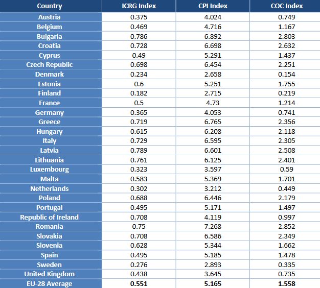 Средний уровень коррупции в странах ЕС-28 (1995-2014)