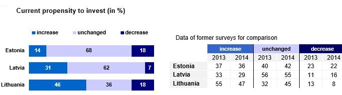 The German companies participating in the survey plan to keep investments at least steady in the present year. "This is a very positive signal," said Schöllkopf. The proportions of those companies, who expect rising investment, remain almost unchanged compared to 2014 with 31% in Latvia and 46% in Lithuania. In Estonia, however, the share of respondents planning to increase investments shrank by 14%, although at the same time fewer companies expect a reduction in investments. In spite of expected wage increases, companies further plan to create new jobs in Estonia, Latvia and Lithuania.