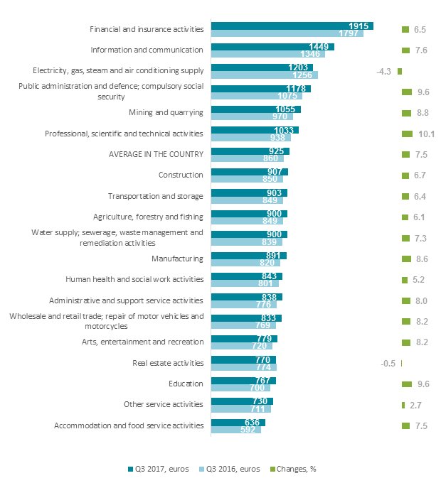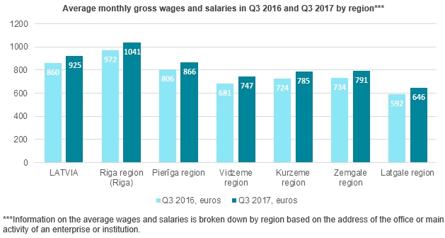 In Q3, average gross earnings constituted 925 euros in Latvia