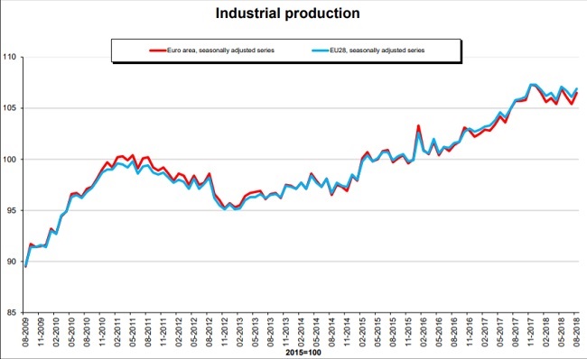 compared with August 2017, industrial production increased by 0.9% in the euro