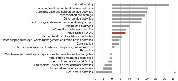 The economic growth was mostly hindered by the decrease of value added of real estate activities, financial and insurance activities and professional, scientific and technical activities.