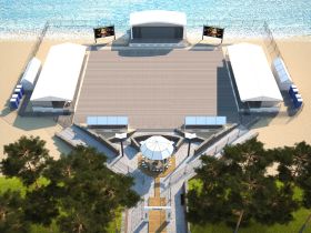 The hall, unique by its concept and location, will be constructed at the initiative of the company "Priority Production" and with the support of Jurmala City Council. It will be located in the most central place of Jurmala – on the beach in Dzintari, between the coastline and the beginning of Turaidas street, – only during two days – on July 22-23. Two big concerts will take place there those days. Dzintari Sea Stage will become the biggest concert hall ever existed in Jurmala.