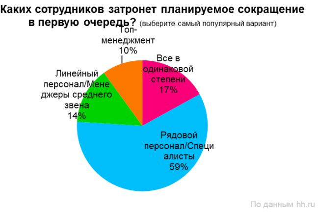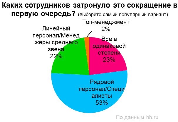 сокращения, прежде всего, попали рядовые специалисты — каждый второй респондент