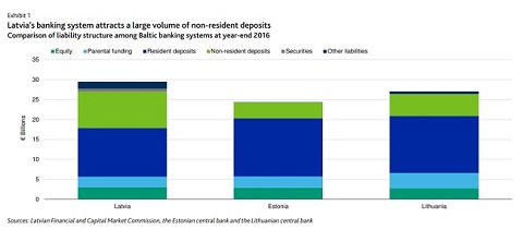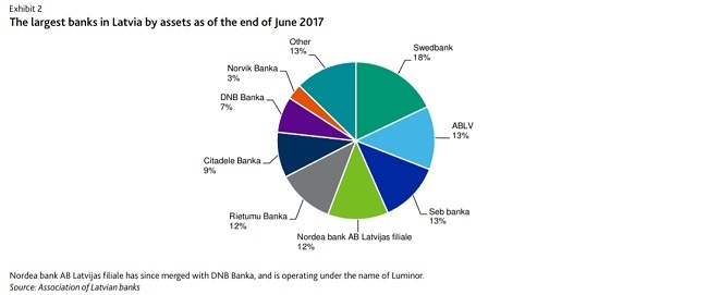 Вклады жителей стран СНГ в ABLV Bank на 30 июня 2017 года составляли 83,9% их общей суммы. У Rietumu banka в конце 2016 года 62% всех кредитов было выдано кредитополучателям в странах, не входящих в Организацию экономического сотрудничества и развития (ОЭСР), что, по мнению Moody's, предполагает большой объем вкладов нерезидентов. У Norvik banka сумма вкладов нерезидентов из стран, не входящих в ОЭСР, в конце 2016 года составляла 57,8%, в том числе 25,3% - вклады резидентов России.