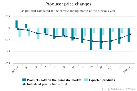 По сравнению с сентябрем в октябре этого года уровень цен производителей в латвийской промышленности увеличился на 0,2%. Цены на продукцию, реализованную на местном рынке, за месяц уменьшились на 0,4%, а цены на экспортированную продукцию выросли на 0,7%.