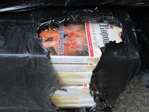 Из вагона, следовавшего из Пермского края в адрес латвийского получателя, таможенники извлекли: 5 000 пачек сигарет «NZ Gold» и 996 пачек сигарет «Camel compact Activate Purple» с акцизными марками Республики Беларусь, 1 000 пачек сигарет «Rothmans Demi» с акцизными марками Республики Таджикистан и 5 500 пачек сигарет «Корона SUPER SLIMS» без маркировки. Всего 12 496 пачек в 25 брикетах обмотанных скотчем.