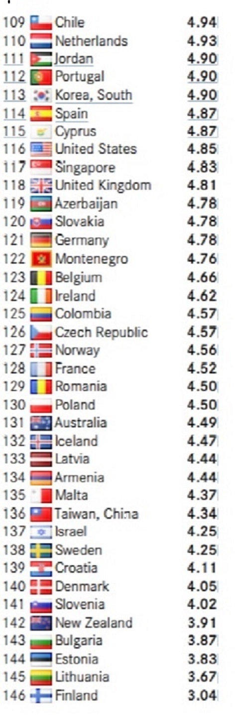 получила 4,44 пункта, Эстония - 3,83, Литва - 3,67, Финляндия - 3,04 пункта.