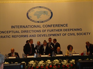 На пленарном заседании Международной научно-практической конференции «Концепция дальнейшего углубления демократических реформ и формирования гражданского общества». Ташкент, 22.04.2011. |