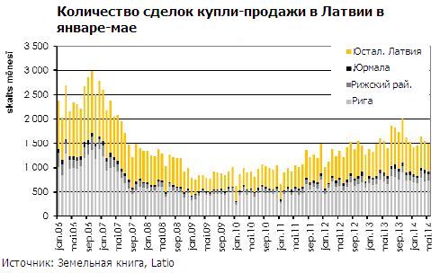 В целом в январе-мае на рынке недвижимости зарегистрировано более 17 300 сделок, что на 0,2% меньше, чем за соответствующий период 2013 года, сообщает LETA.
