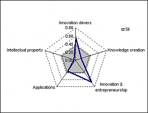 Европейское инновационное табло 2007 дает сравнительную оценку инновационной деятельности стран ЕС и других стран мира (График 1). В нем впервые проводится анализ инноваций в секторе услуг; выявляются социально-экономические факторы, способствующие инновациям; определяется эффективность инноваций, а также описываются инновации, не являющиеся результатом научно-исследовательской и опытно-конструкторской работы. Отчет отражает четыре относительно стабильные группы стран (из 39 стран мира) на основе их инновационной деятельности в течение прошедших 5 лет: